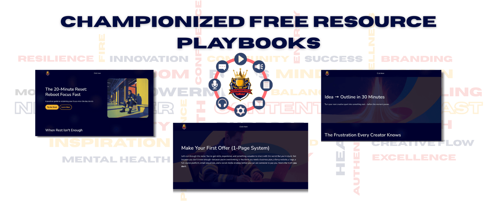 Option 2: Grab these playbooks. Spend 20 minutes resetting your focus. Spend 30 minutes outlining your next big idea. Spend an hour finally packaging your offer.