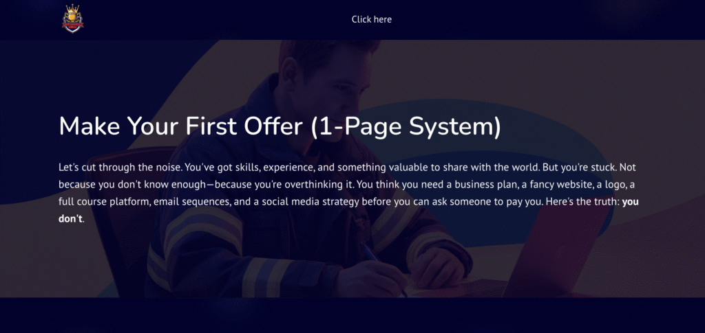 Make Your First Offer (1-Page System) is built for creators and coaches. It is designed for those ready to stop overthinking and finally launch. No MBA is required.